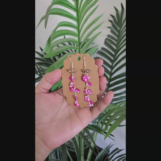 Pink & White Cascading Petal Earrings - Handmade Statement Jewelry | Mileidy Fine Art