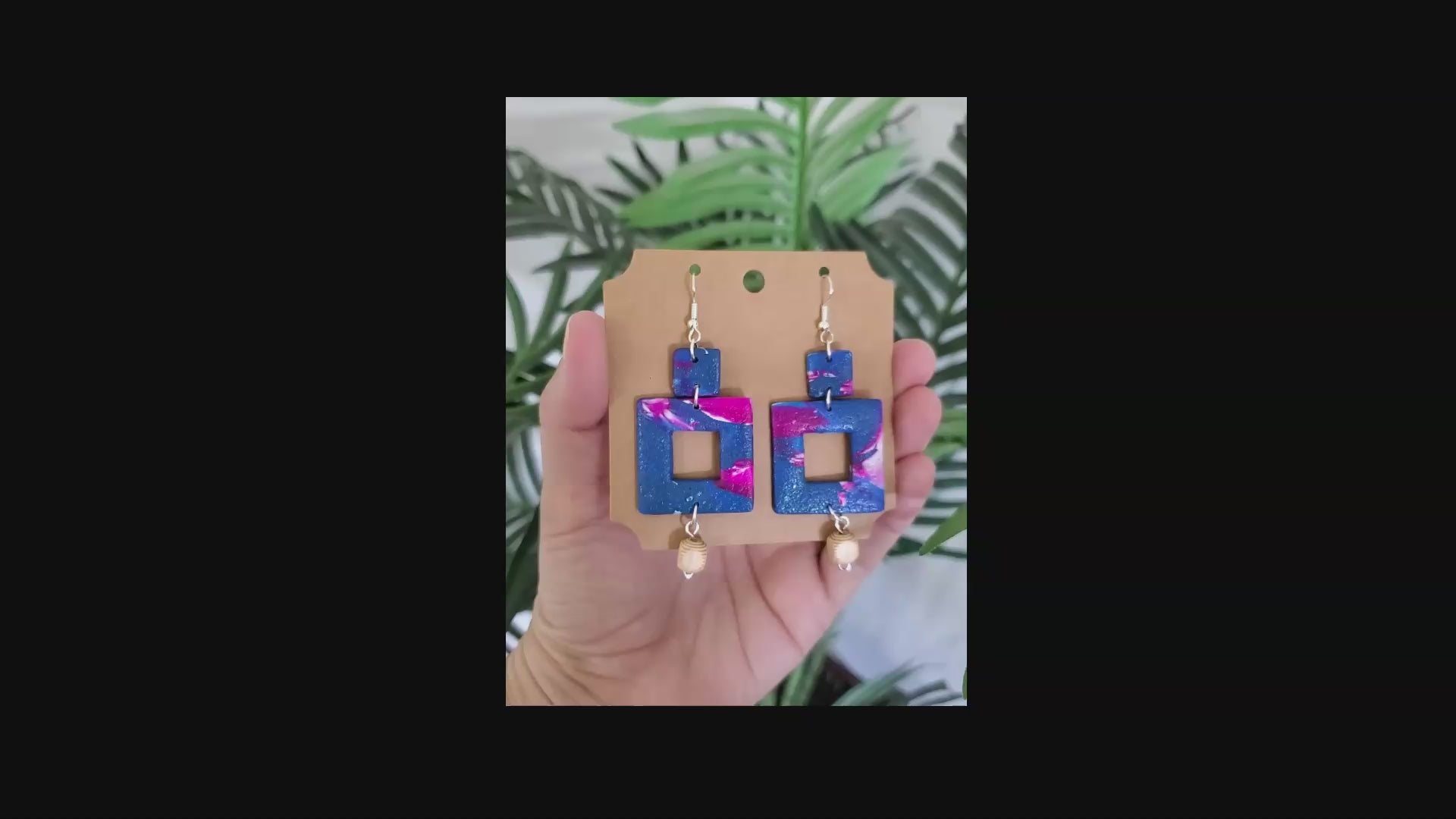 Handcrafted Polymer Clay Earrings – Bold Geometric Blue & Pink Statement Jewelry | Lightweight & Hypoallergenic